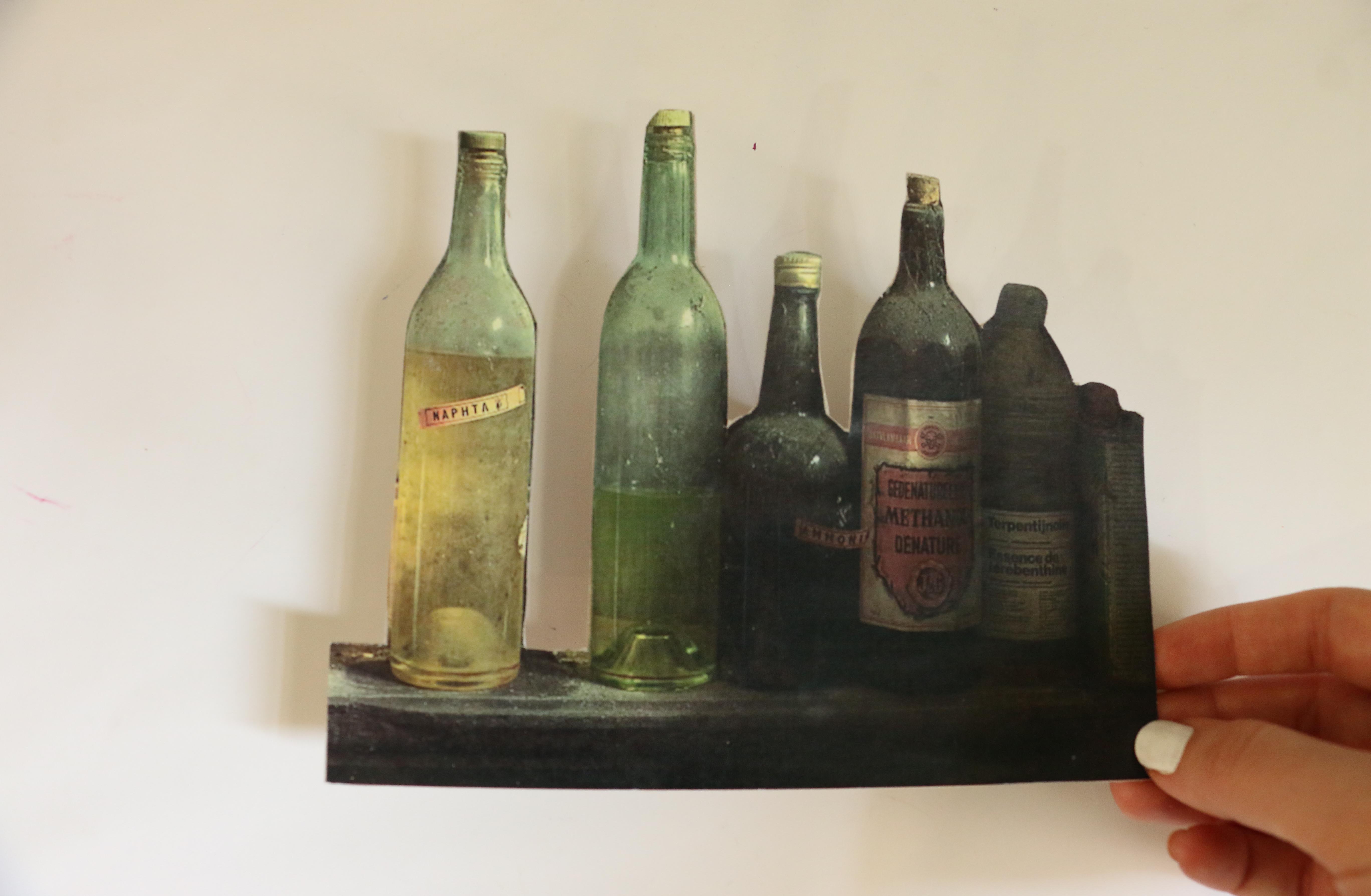 The performance is a visual storytelling method that blurs the line between animation, puppetry, and visual art and seeks to create fantasy and dreamlike spaces through limited de-familiarization and the use of collage. The narrator/camera moves between spaces and walls and the venue is a 12-meter room where the equipment is arranged on different levels and it looks like an installation. Dolls and scenes are from collages of Renaissance paintings and toy theatre drawings that were common in 19th century England and old drawings of paper toys. The mobility of any doll is limited and repetitive, such as spinning around or shaking legs, or just hands.